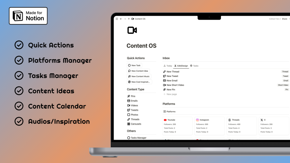 Introducing the ultimate tool for content creators—The Notion Content OS Template! This all-in-one system helps you stay organized, inspired, and consistent with your content creation.